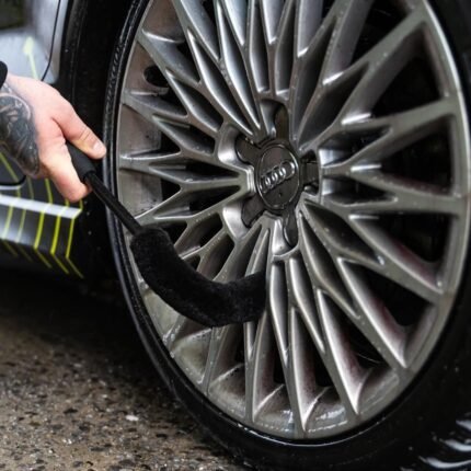 chemicalworkz Wheel Mitt är tillverkad av högkvalitativ plysch-mikrofiber, vilket gör den extremt mjuk och flexibel. Ytan består av olika typer av sammanflätade ”glidfibrer” som säkerställer maximal säkerhet och minimal friktion under tvätten. Den ergonomiska formen gör att du smidigt kan tvätta fälgar, dörrfalsar och många andra svåråtkomliga utrymmen med full kontroll.