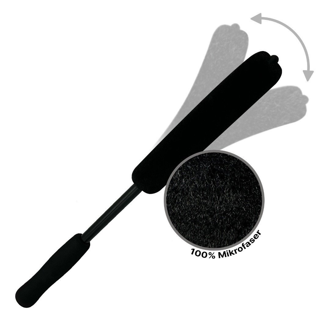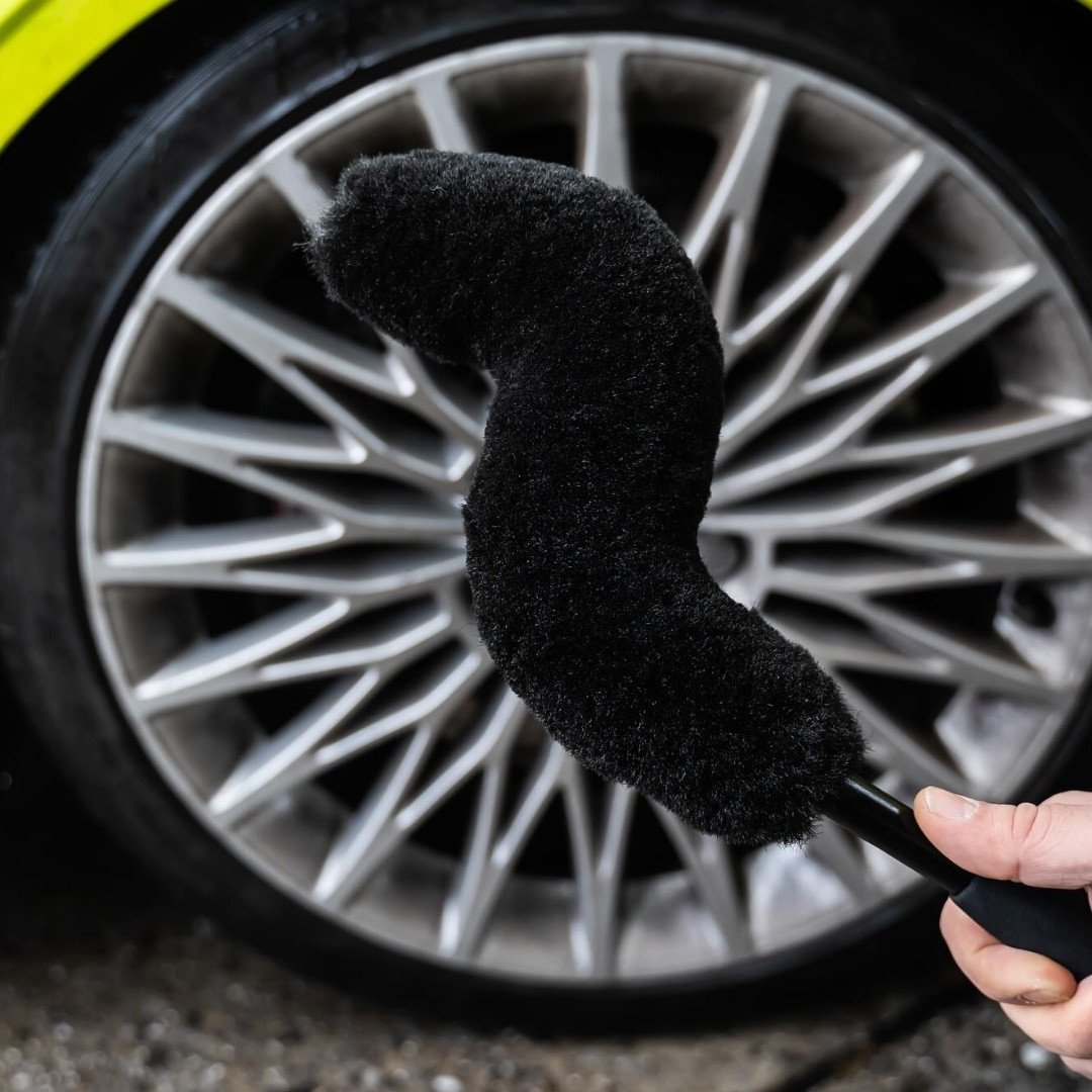 Tack vare den flexibla strukturen hos Evo-fälgborsten ger den tillgång till även svåråtkomliga ställen.