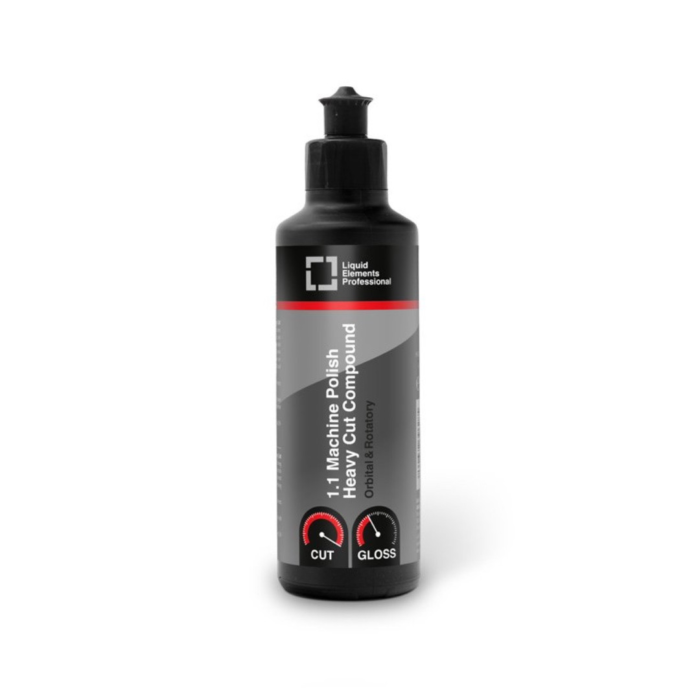 Liquid Elements 1.1 Machine Polish Heavy Cut är ett mycket grovavverkande polermedel utvecklat med de senaste självmiskande kornen och innovativa tillsatser för att säkerställa utmärkt lackvård.