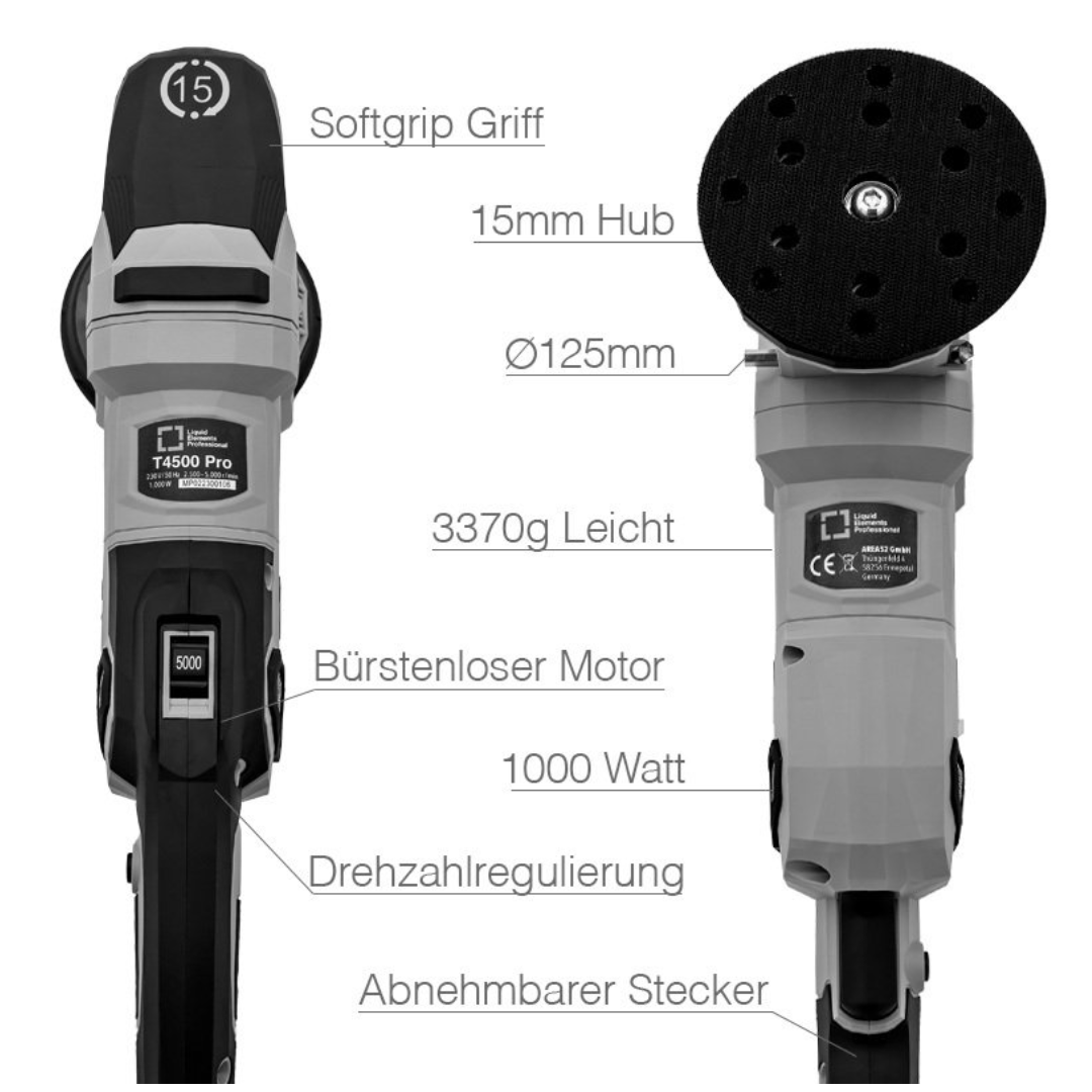 Liquid Elements T4500 Pro är det perfekta valet för professionella detailers och entusiaster som kräver högsta standard av precision, kraft och effektivitet. Med den nya IonDrive 2 borstlösa motorteknologin, 15 mm slaglängd och ett dubbelt reduktionsväxelsystem får du kompromisslös prestanda, låg vibration och ett felfritt slutresultat – varje gång.